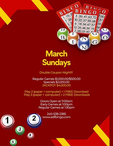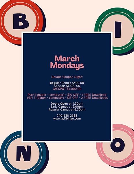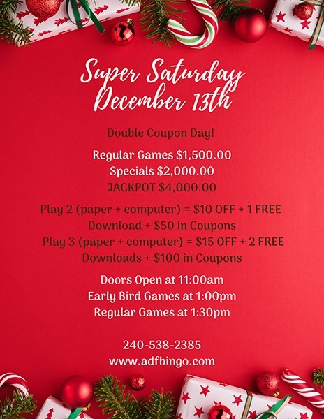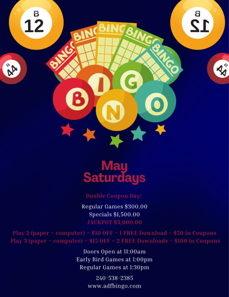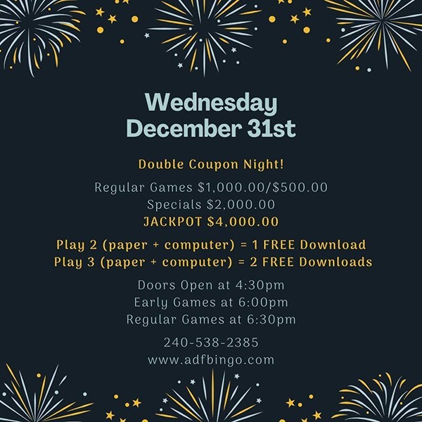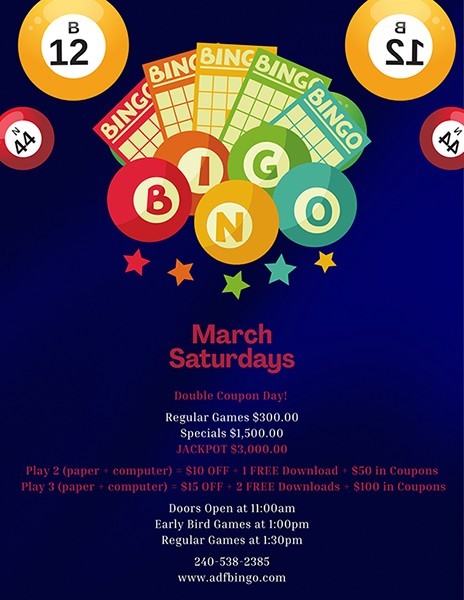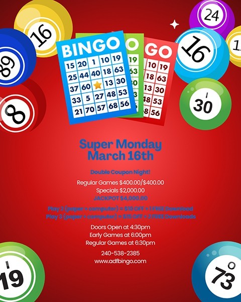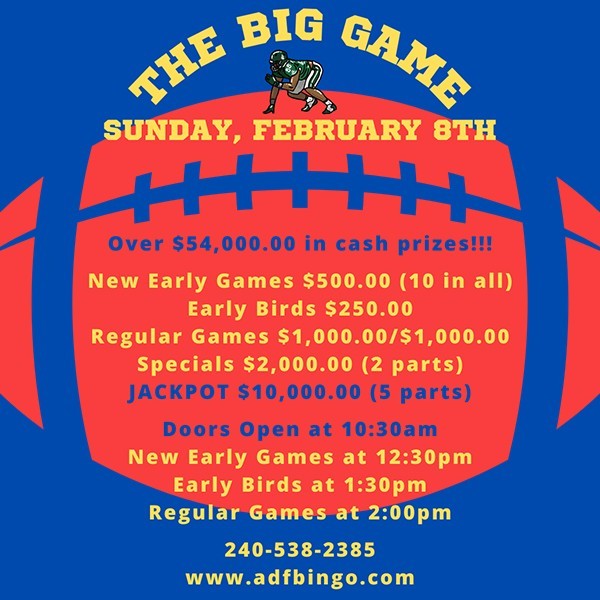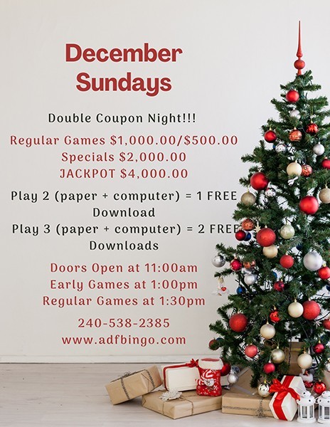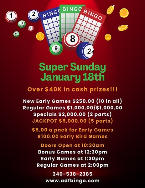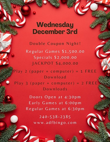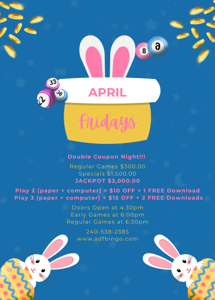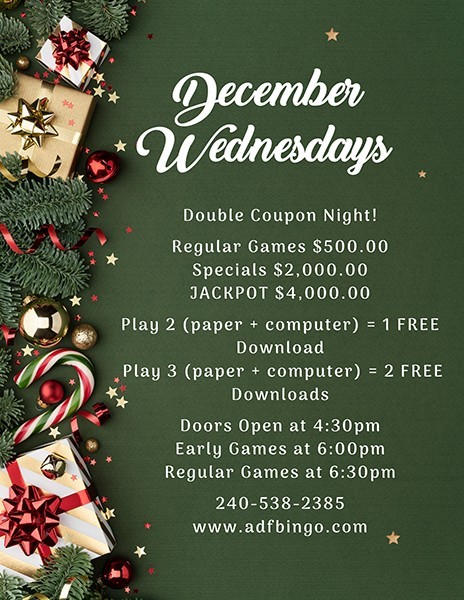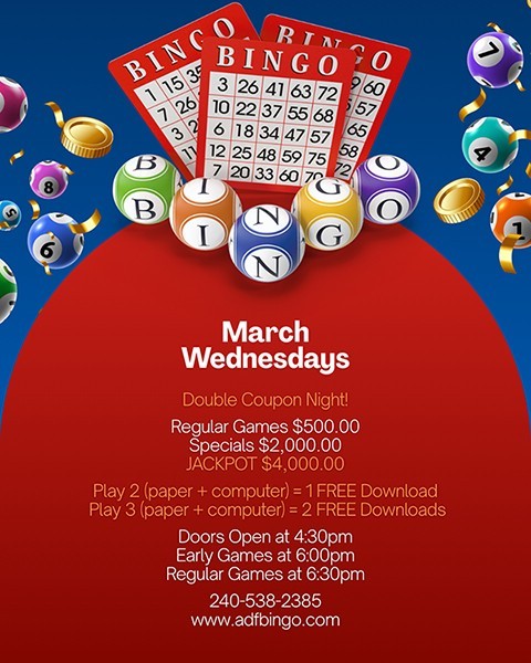 You’ll enjoy exclusive offers, promotions, discounts, and more! Get your ADF Bingo Loyalty Card today and start earning your rewards! The more you play the more points you receive!