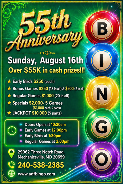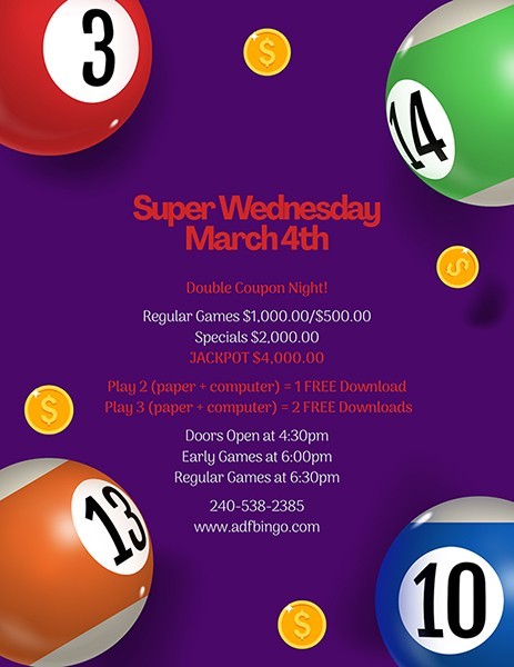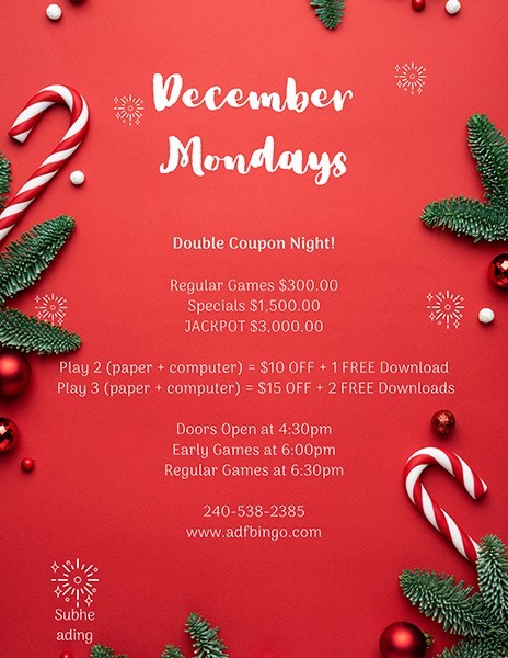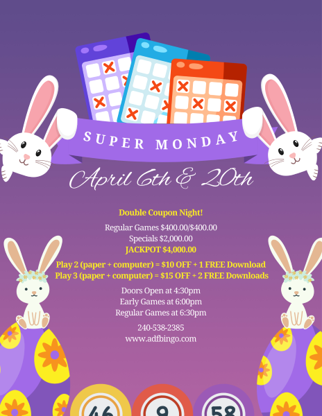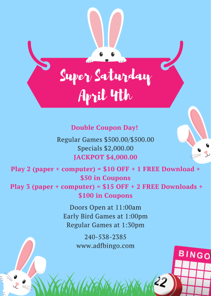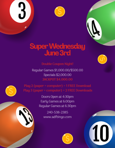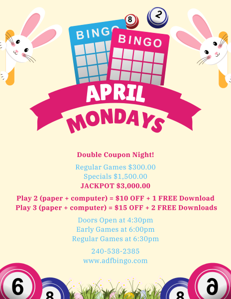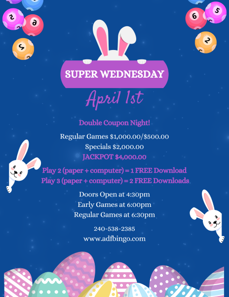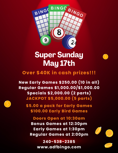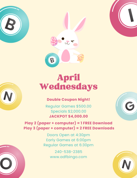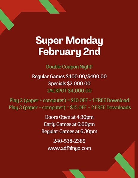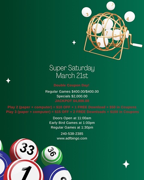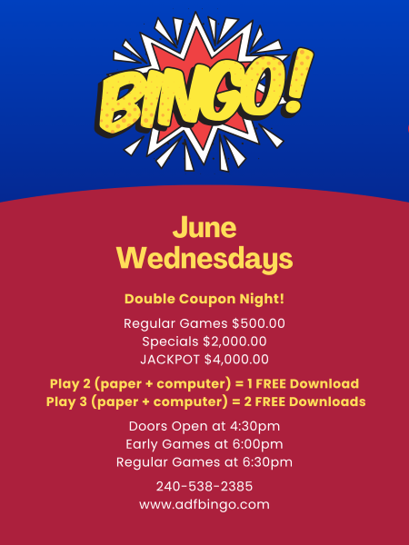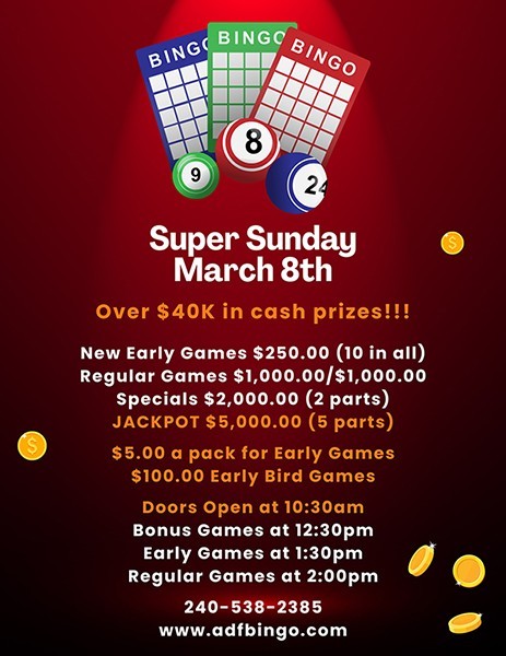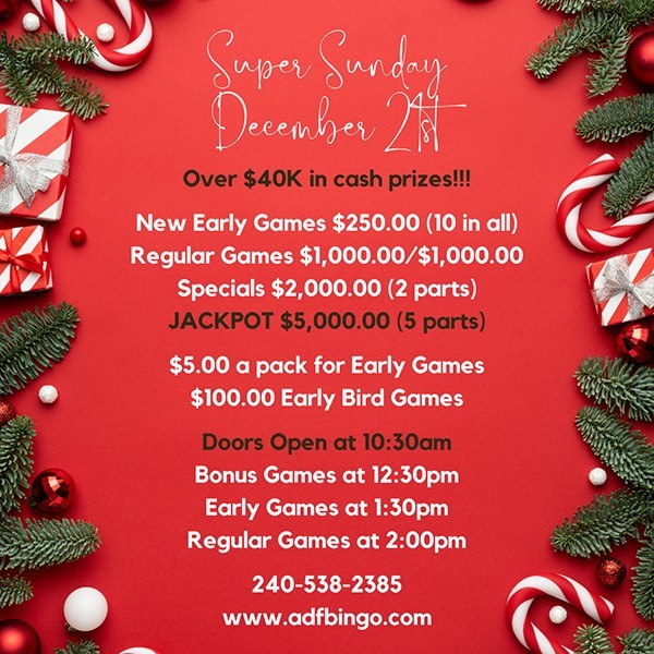 You’ll enjoy exclusive offers, promotions, discounts, and more! Get your ADF Bingo Loyalty Card today and start earning your rewards! The more you play the more points you receive!